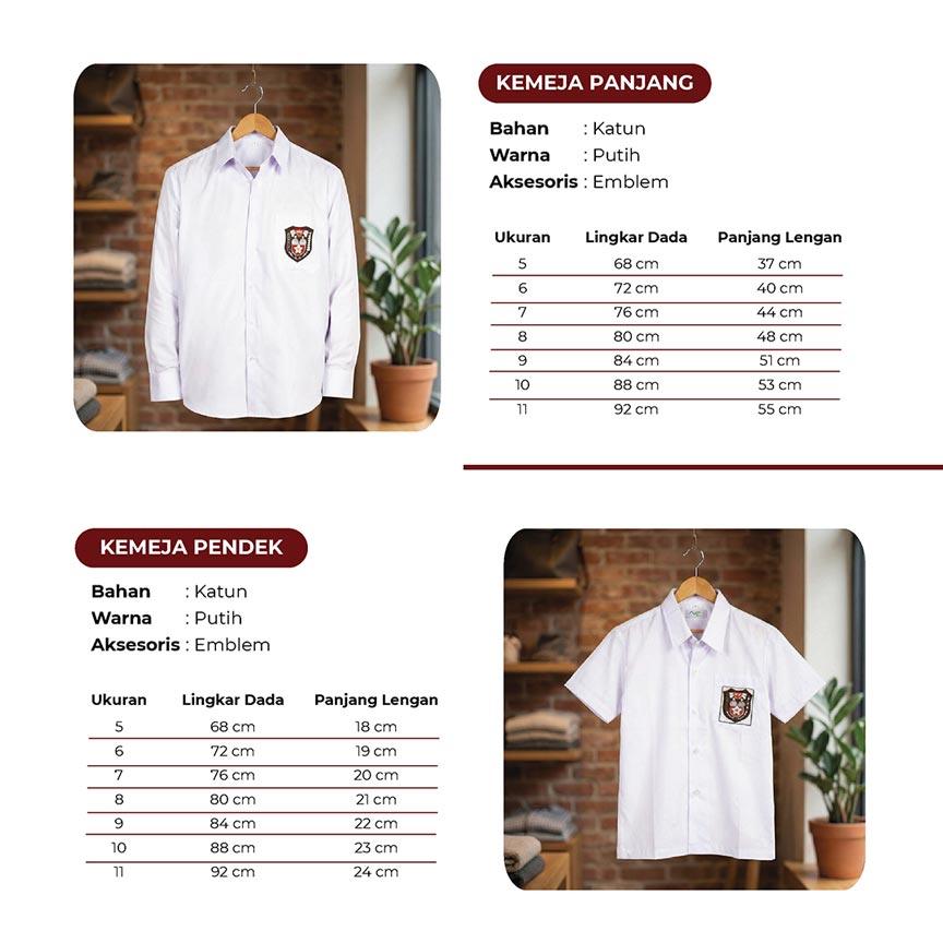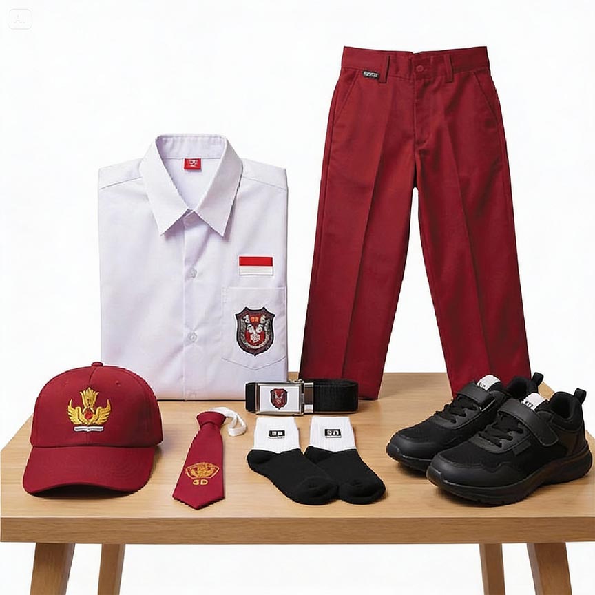 Kami menyediakan paket kelengkapan seragam sekolah SD (Sekolah Dasar) yang dirancang sesuai standar pendidikan nasional Indonesia. Paket ini mencakup satu set seragam harian merah putih lengkap dengan atribut pendukung untuk menunjang aktivitas belajar siswa secara nyaman dan rapi.
